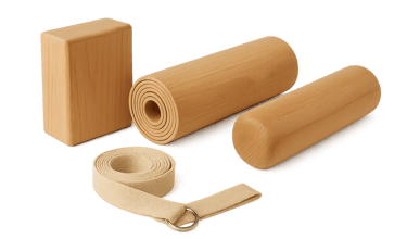 "Enhance your practice with eco-friendly wooden supports designed for strength, stability, and mindfulness."